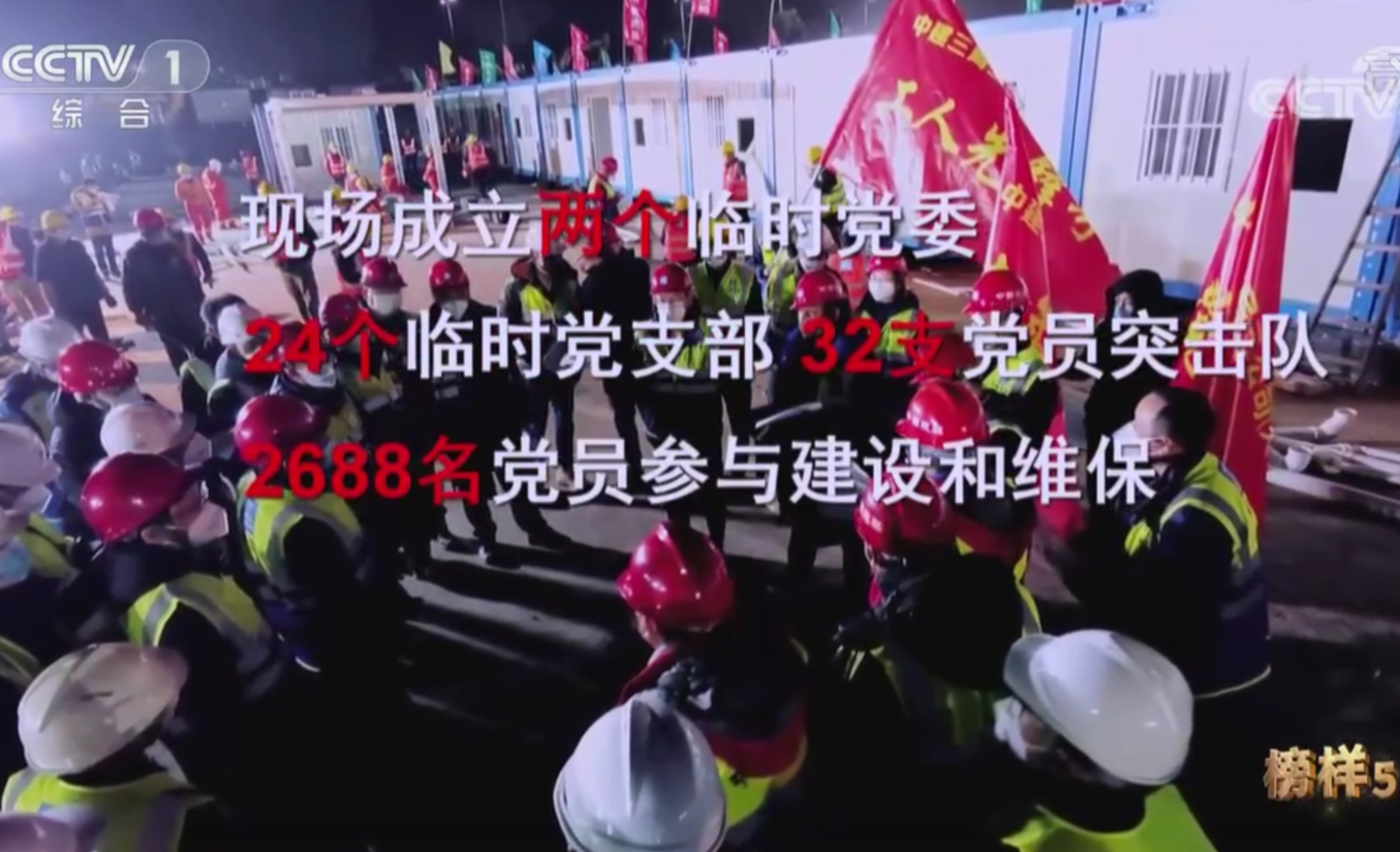 那是2020年的开始,一场突如其来的新冠疫情首先袭击了武汉。2020年1月23日,农历腊月29日,武汉宣布封城。2020年1月25日,农历正月初三,武汉火神山医院开工。中建集团临危受命,集团党组调集12家子企业参战,4万余名建设者闻令而动,从八方赶来。施工现场成立了两个临时党委,24个临时党支部,32支党员突击队,2688名党员干部参与建设和维保。“天连五岭银锄落,地动三河铁臂摇”,2月2日,武汉火神山医院交付使用,从方案设计到建成仅用了神奇的十天。2月6日雷神山医院也建成……