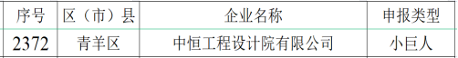 11月14日,成都市经济和信息化局发布了“关于公布2022年度成都市中小企业成长工程培育企业名单的通知”,九游老哥J9俱乐部官网工程设计院有限公司连续四年成功入选成都市中小企业成长工程培育企业——小巨人企业。